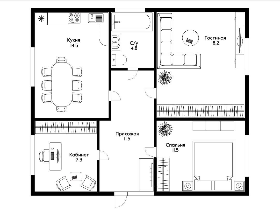 Общая площадь 68 м2