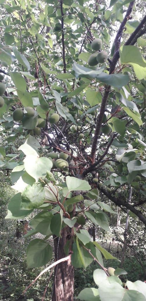 5 видов яблонь, груша, слива, персик, черешня, вишня, алыча, 2 сорта винограда, смородина двух видов, крыжовник, клубника. Цветы растут на придомовой территории участка.