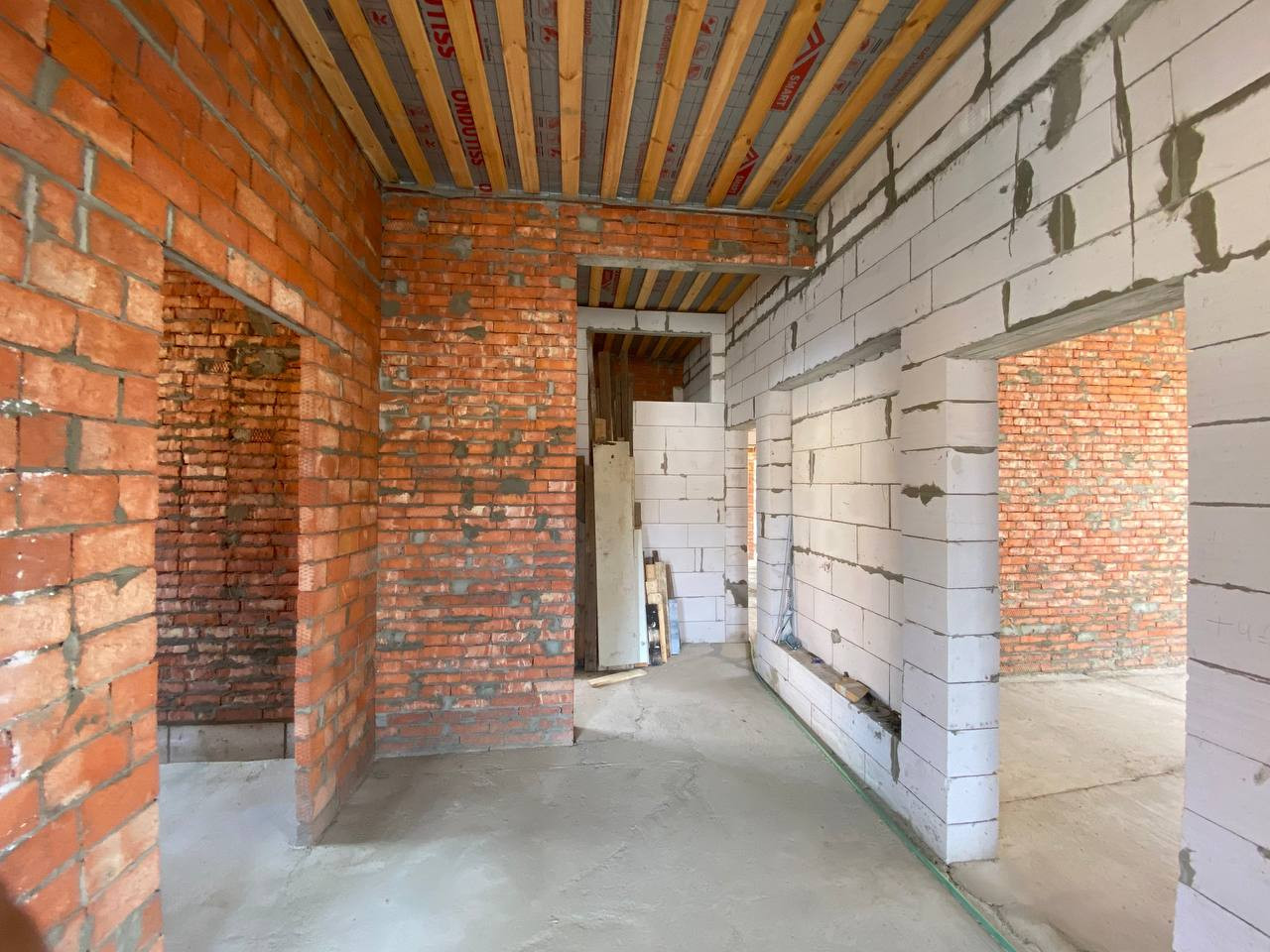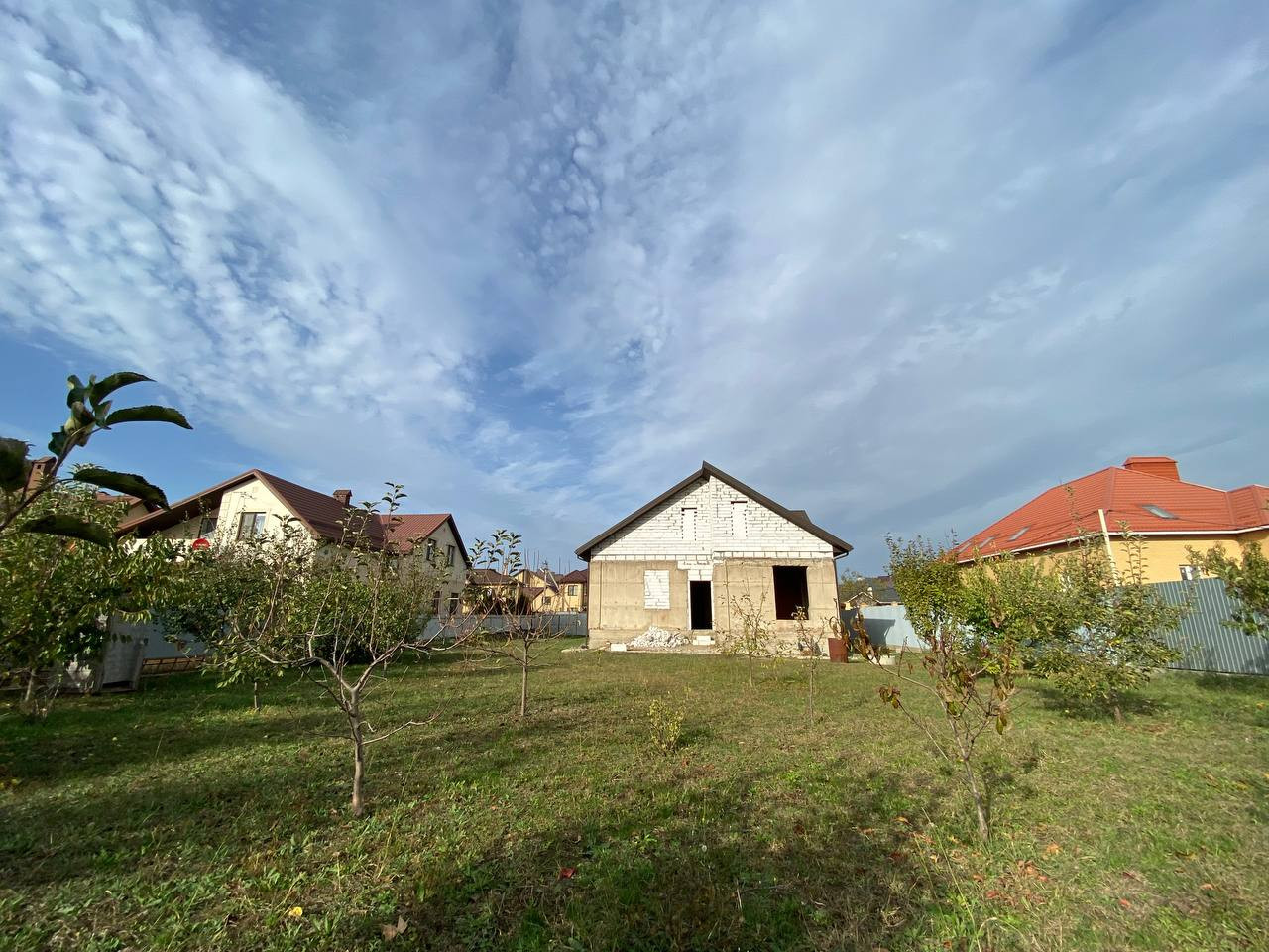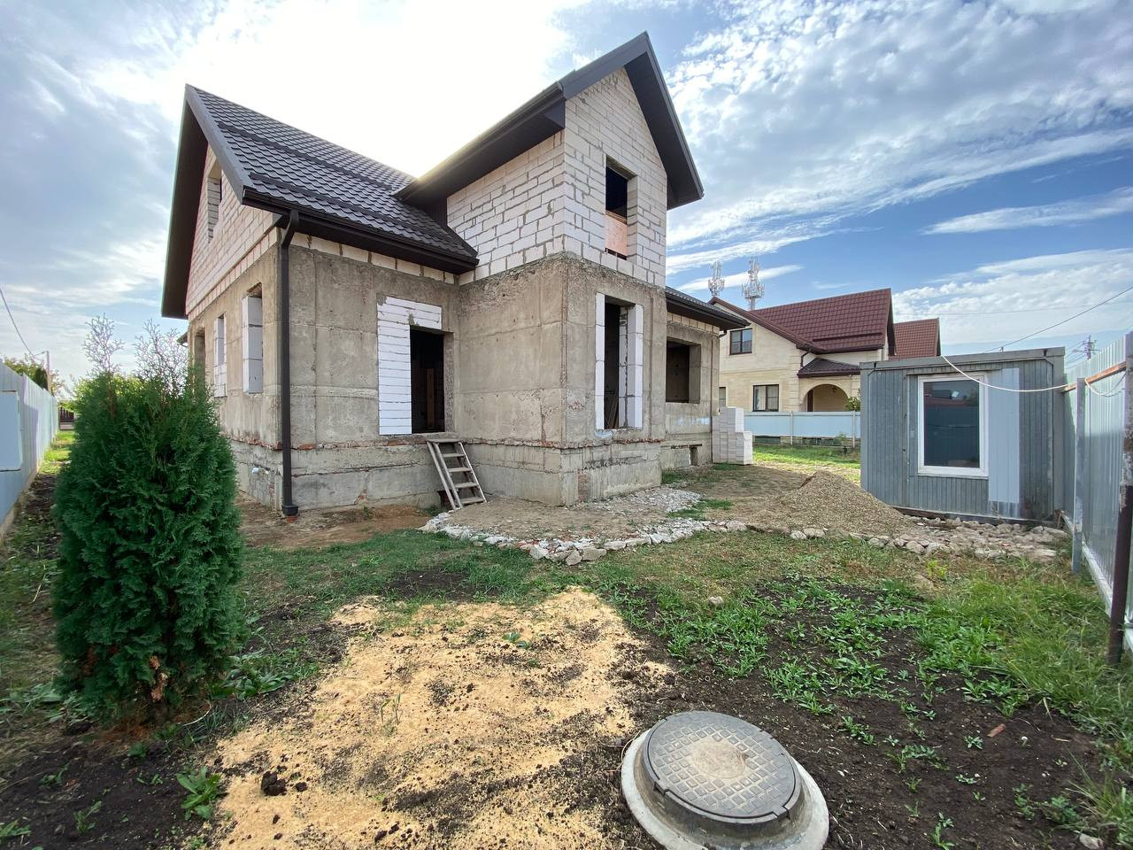 Широкая улица. Перед домом огромная площадка под стоянку и клумбу. Дружные соседи, все славяне. 3-х фазный ток. Водопровод в доме. Молодой плодоносящий сад. Тыльная сторона участка выходит в проулок. Можно разделить участок на два. Планировалась эксплуатация дома двумя родственными семьями. Возможна перепланировка. Подвал под всем домой с входом из дома и улицы. Подвал сухой, септики у всех сухие, фильтрация грунта отличная. Газ по меже, соседи все подключены. По канализации готов только септик глубиной 5м, диаметр 3м. Ливнёвка по одной стороне дома с колодцем 3,5м.