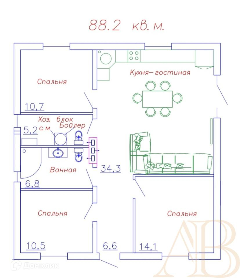 Общая площадь 88 м2