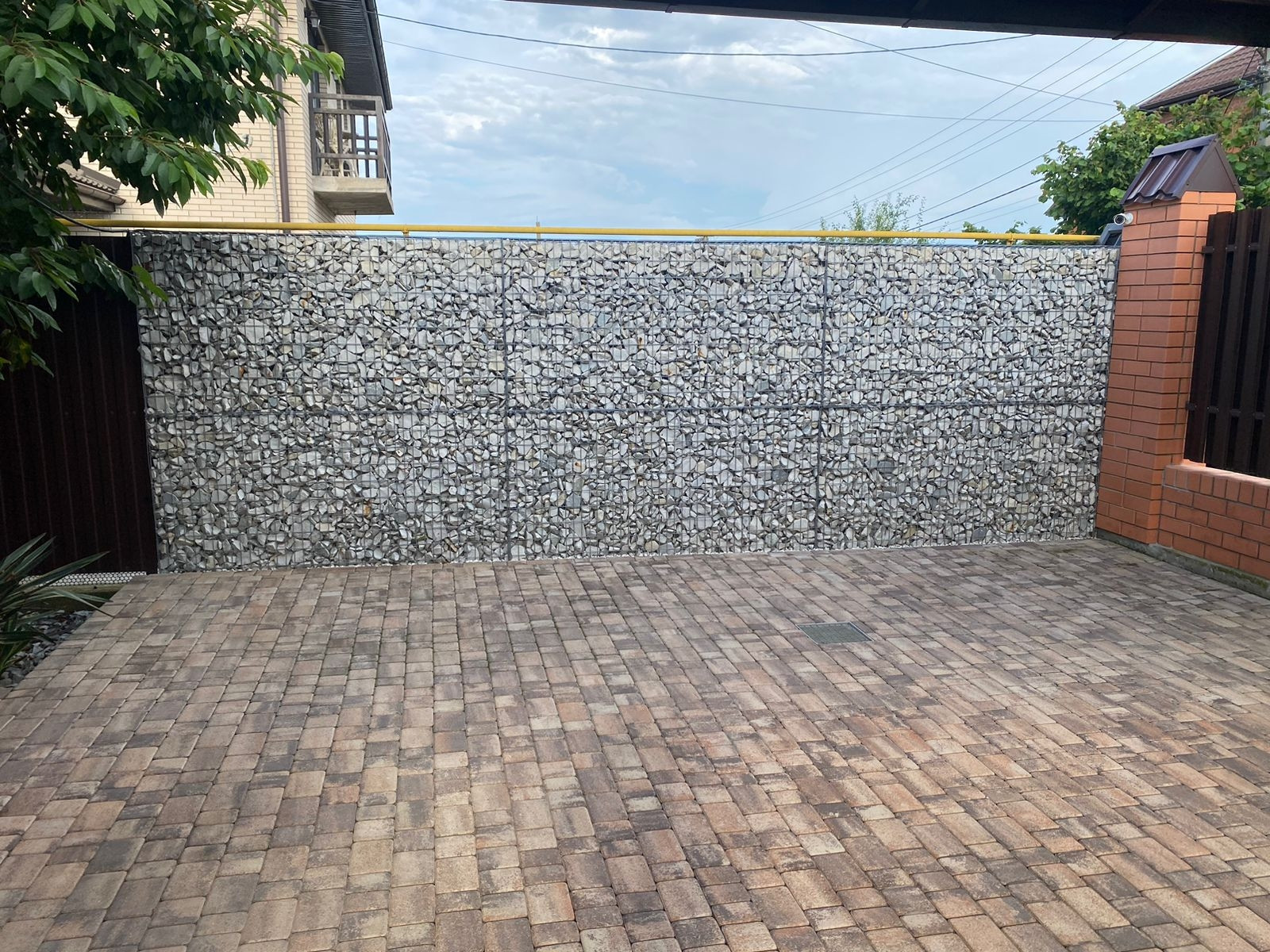 • в декоративных целях часть забора с соседями сделана из габионов