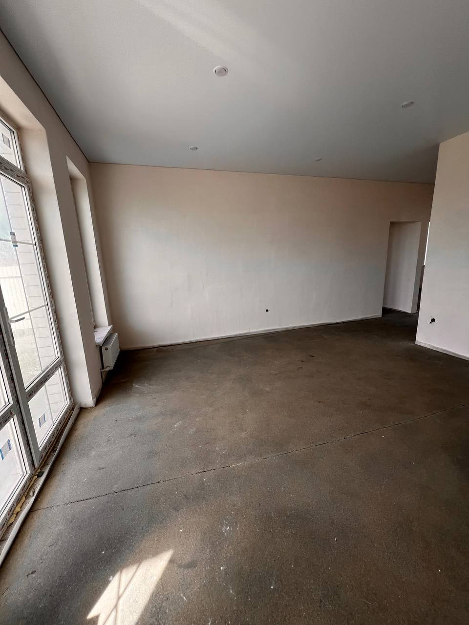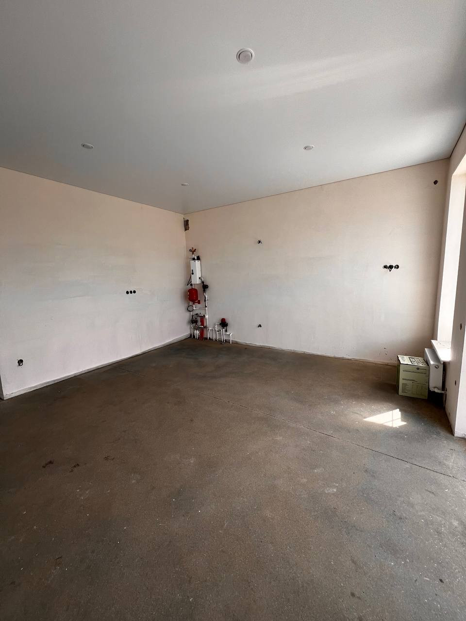 Дом с качественной предчистовой отделкой. Три комнаты и просторная кухня-гостиная. В санузле есть вентиляционное окно. В зонах общественного пользования сделан теплый пол (коридор, санузел и кухня-гостиная).