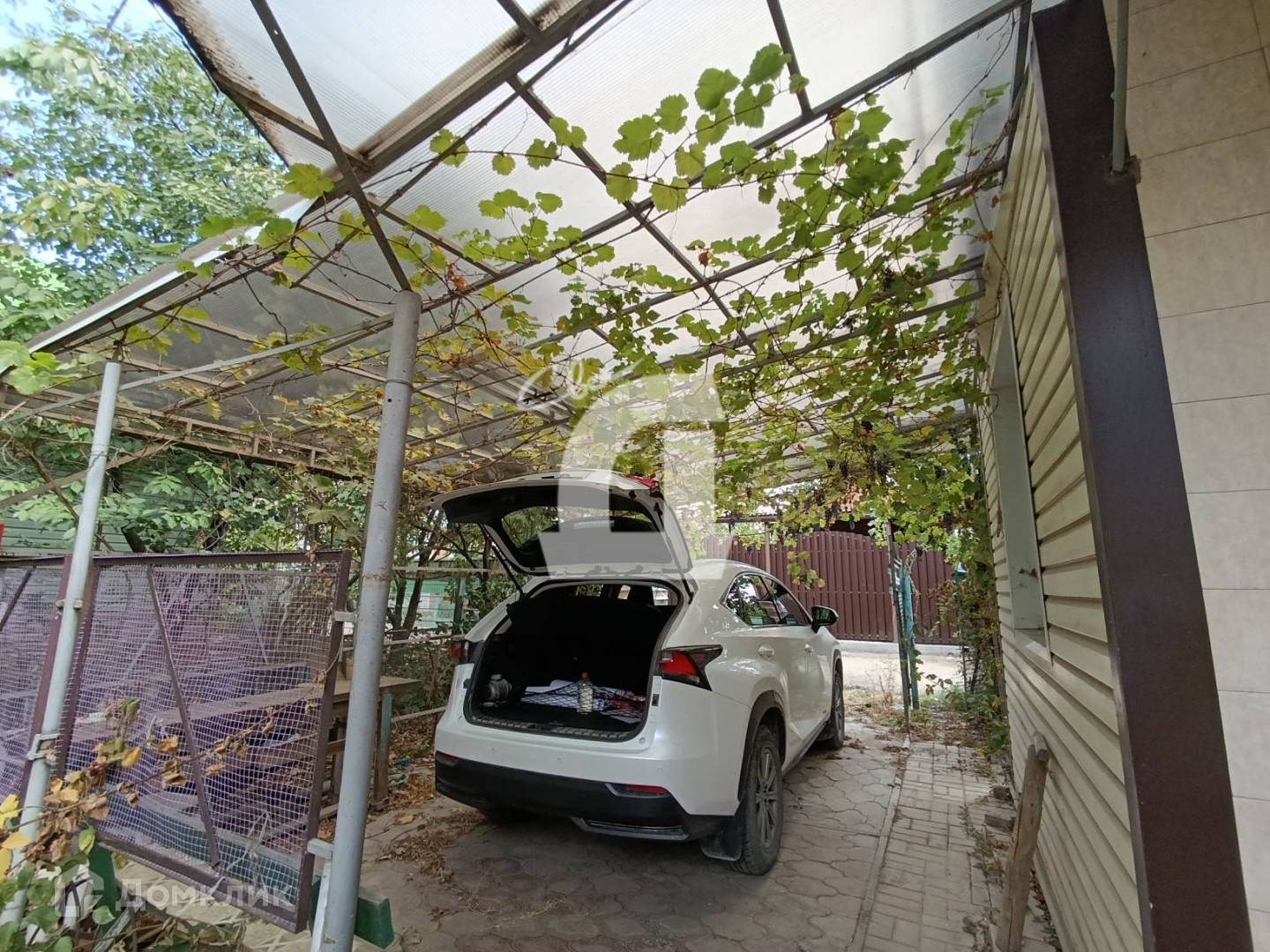 Двор благоустроен. Площадка под автомобиль вымощена плиткой