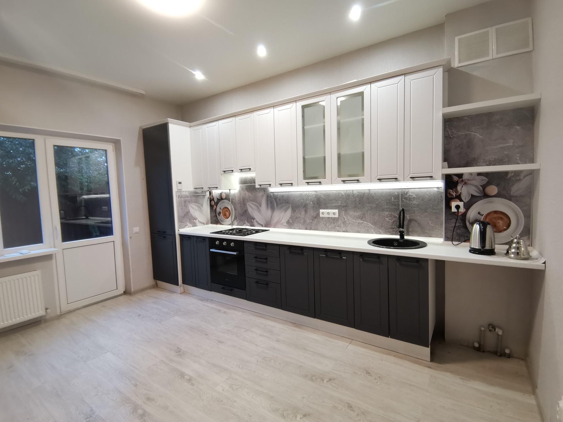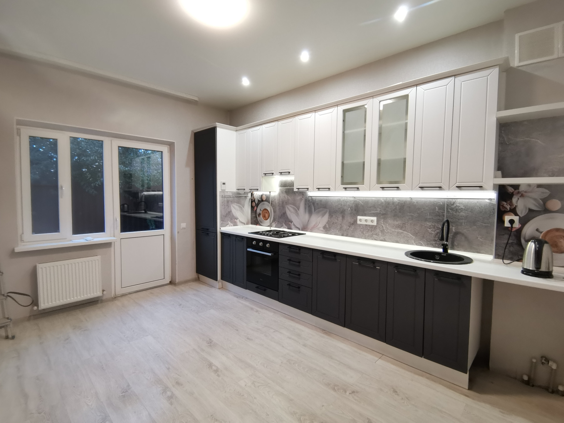 Полный евроремонт. На кухне остается кухонная мебель, встроенная техника. Плита газовая. В доме сетевой газ, центральная канализация, электричество 15 кВт, водопровод.