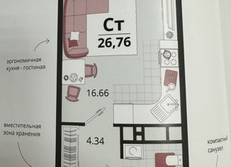 Квартира на продажу студия, 26.8 м2