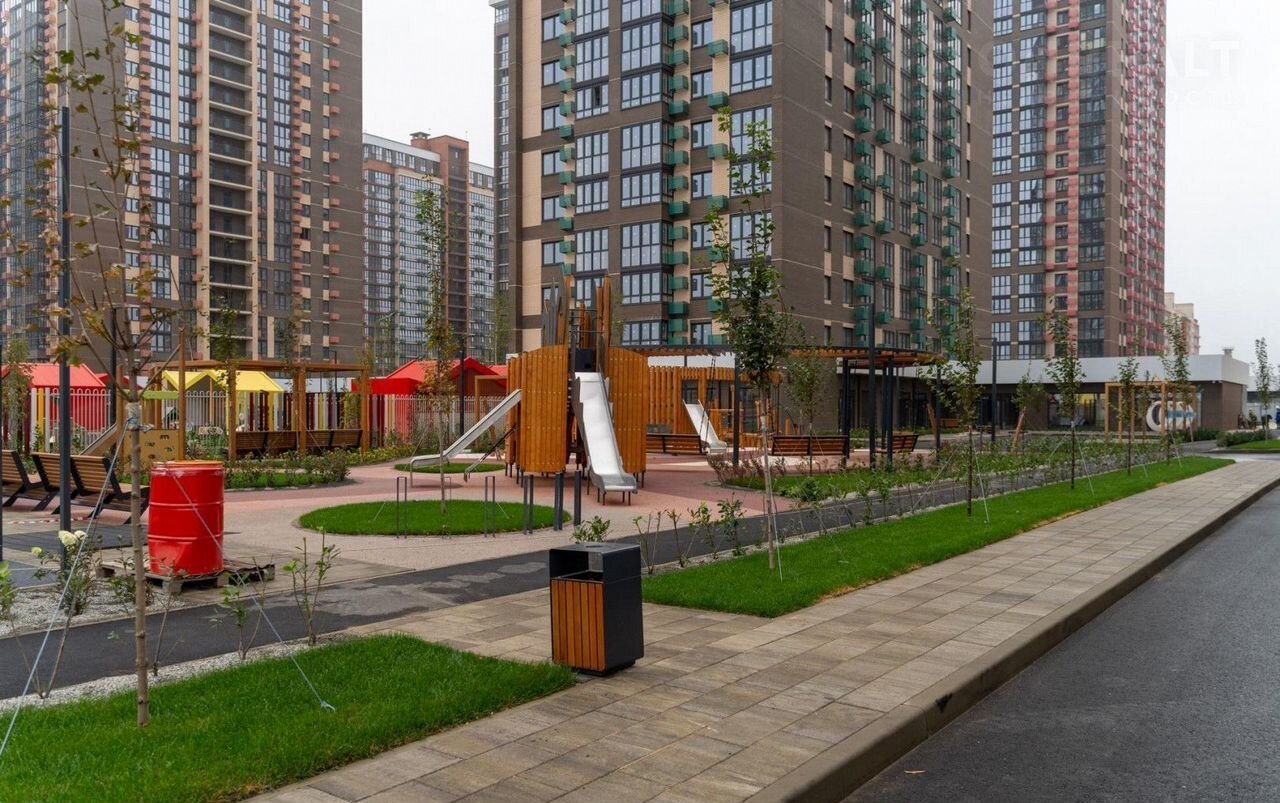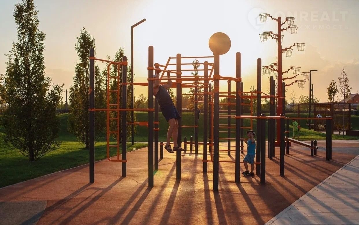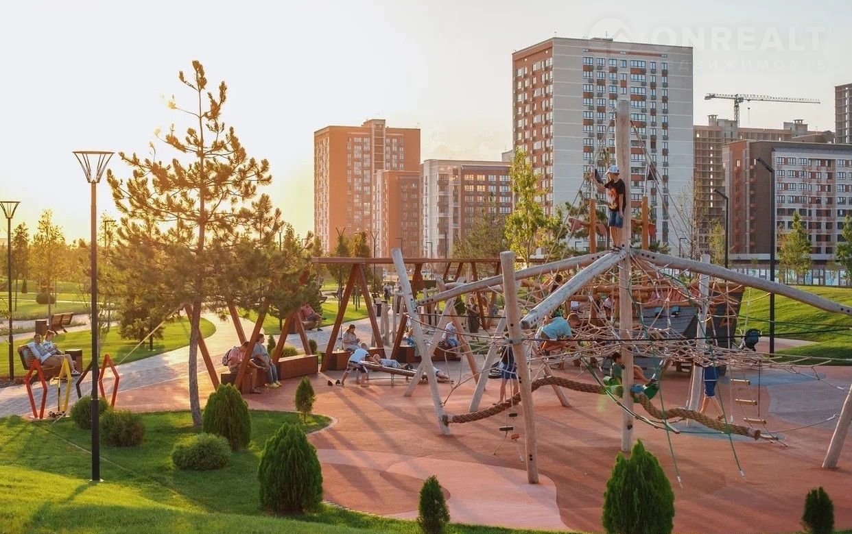* Огромный парк семейного отдыха (9 га): с беговыми и велодорожками, скейтпарком, зоной йоги, контактным фонтаном, светящимися качелями, местами для гриля и пикников, а также зонами для выгула собак.