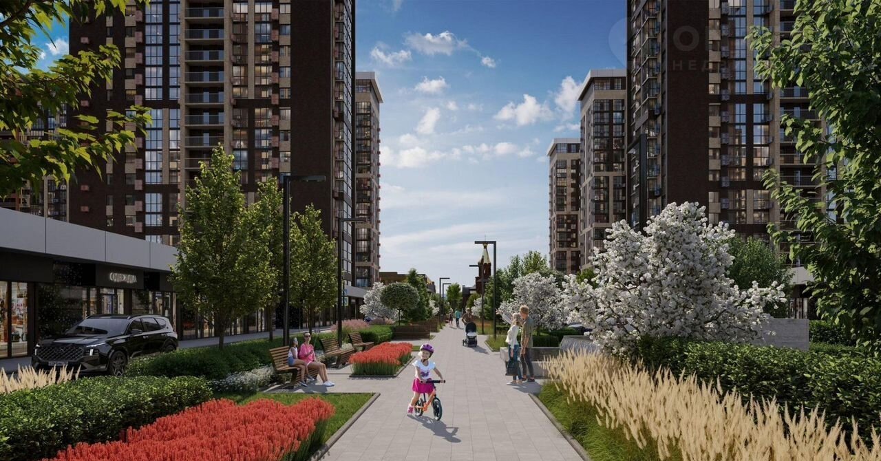 * Сервис под рукой: фудхолл, ресторанная галерея, магазины, пекарни, салоны красоты – все на первых этажах домов. Есть и собственный Храм.