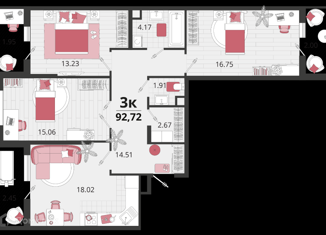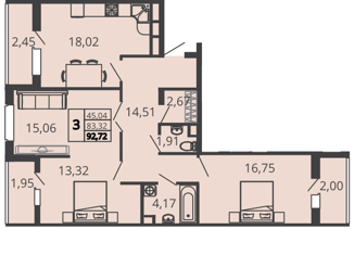 Общая площадь: 92.72 м2
