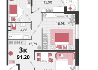 Общая площадь: 91.2 м2
