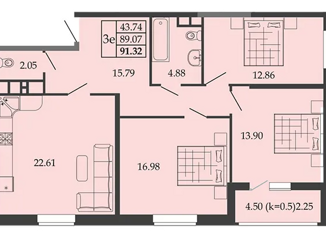 Общая площадь: 91.3 м2