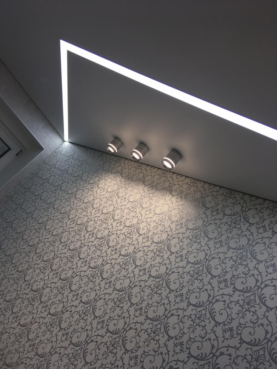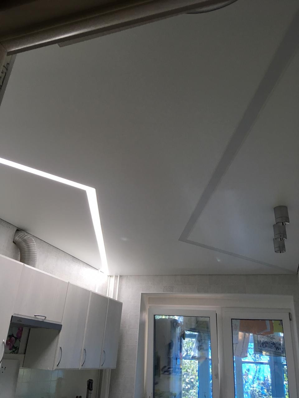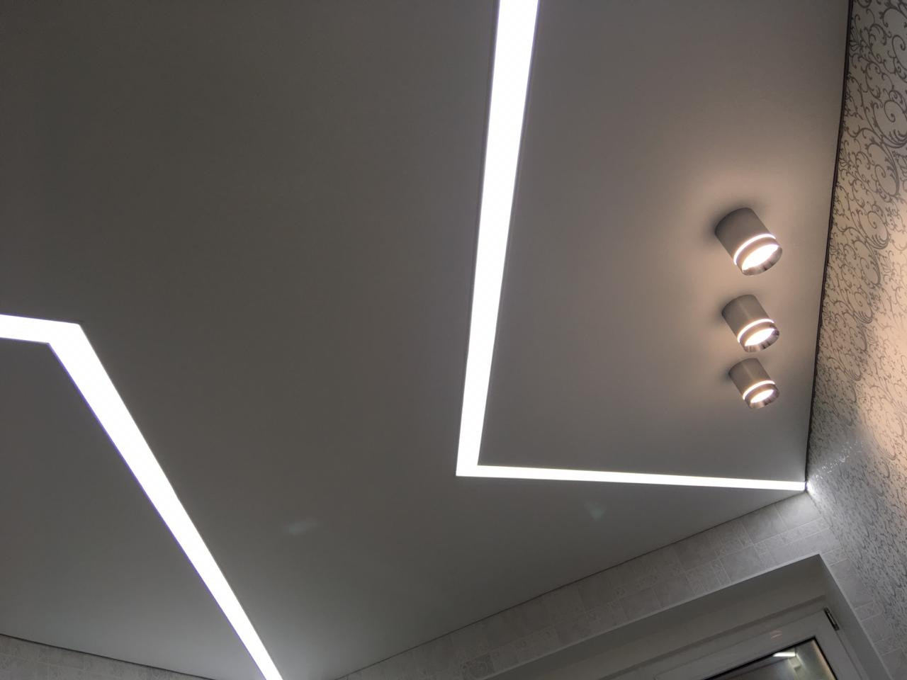 Натяжные потолки сложной конфигурации с встроенным светом.