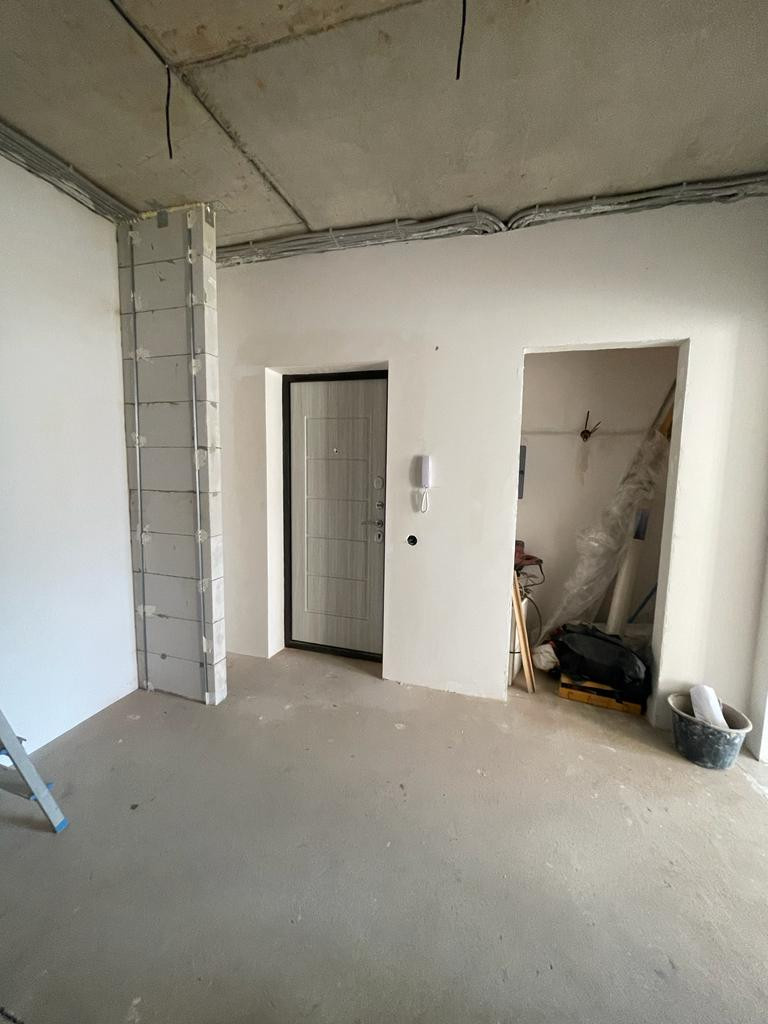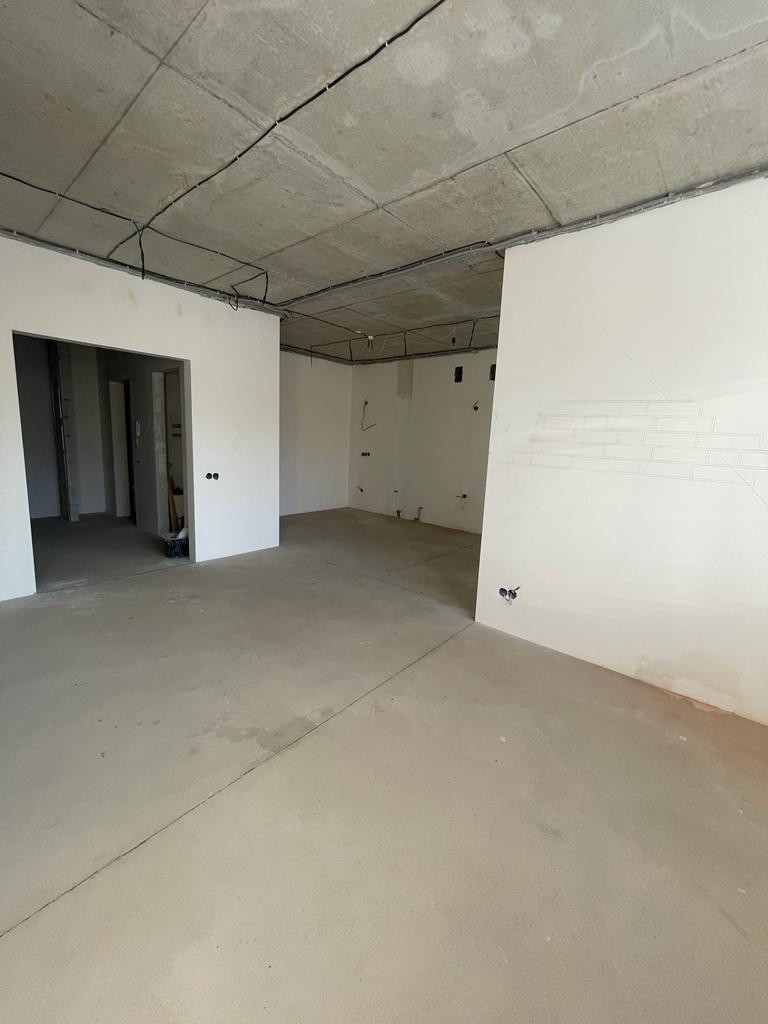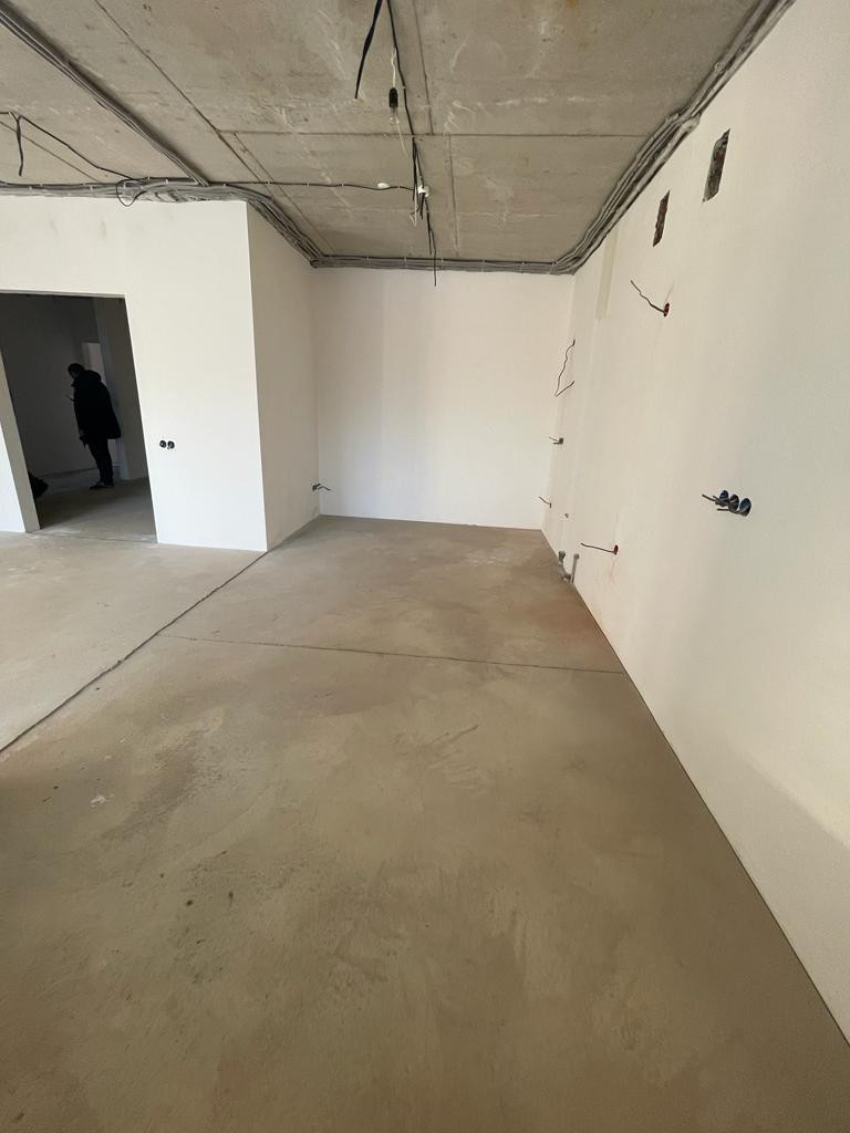 Квартира с большой кухней-столовой, с качественной предчистовой отделкой, вся электрика разведена, сделаны водяные теплые полы в прихожей, кухне-гостиной и санузле.