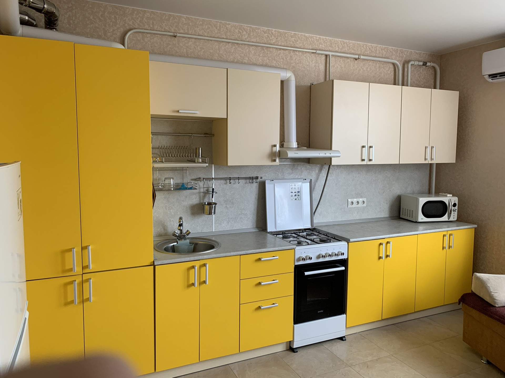 Большая кухня и 2 небольших спальни.
