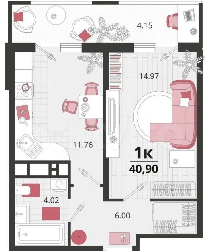Общая площадь 40.9 м2