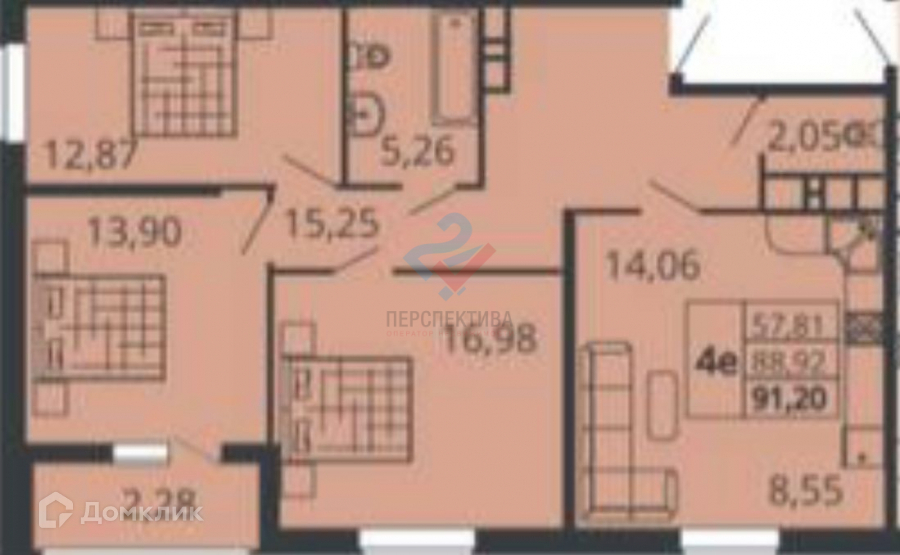 Общая площадь 91.2 м2