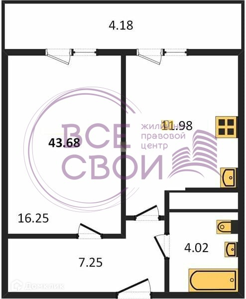 Общая площадь 43.68 м2