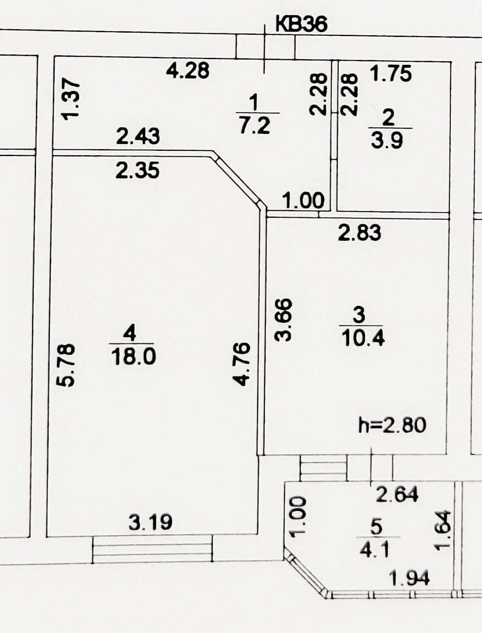Высота потолков 2.8 м