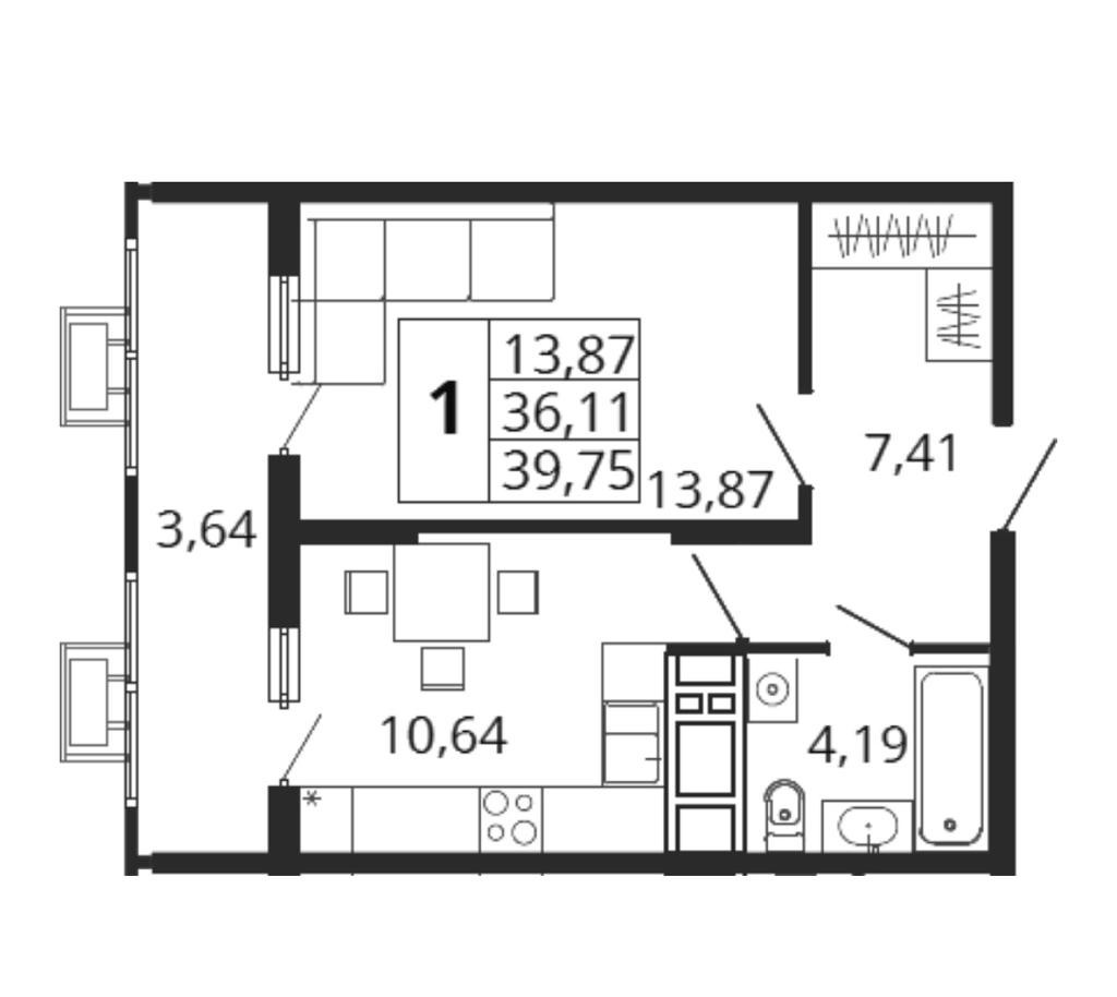 Общая площадь 39 м2