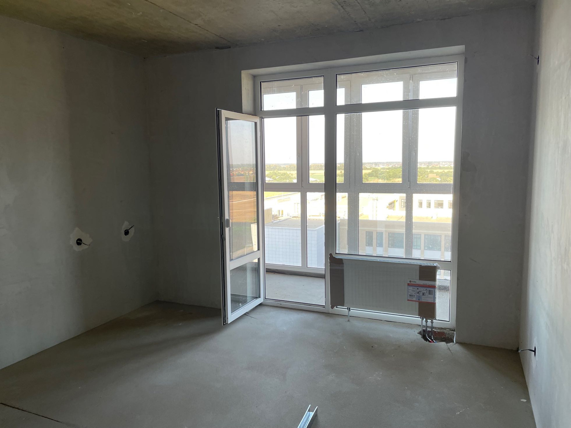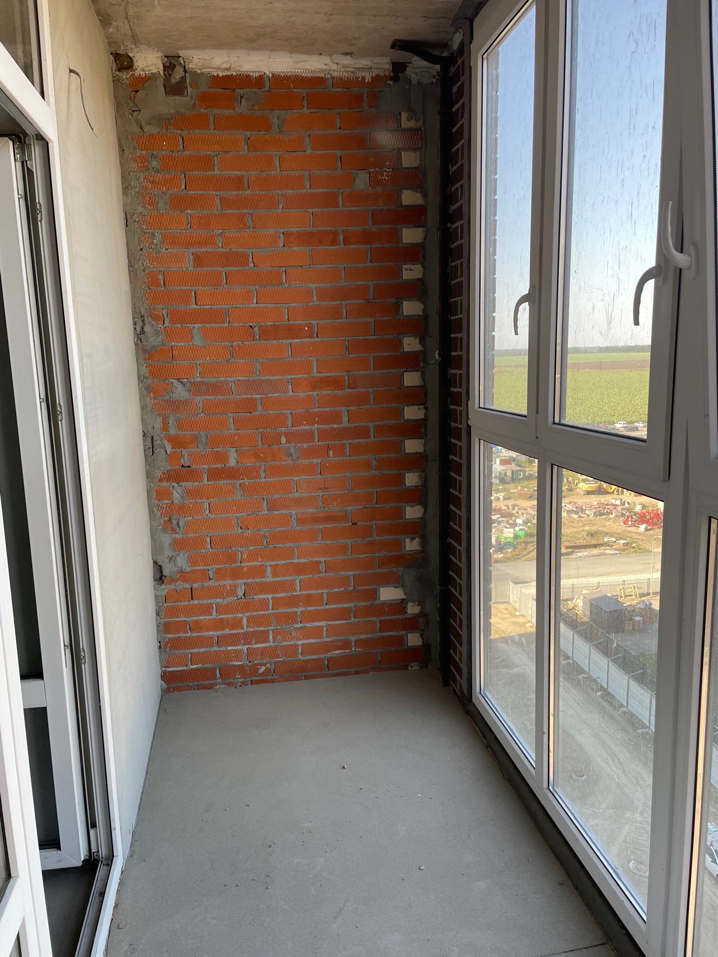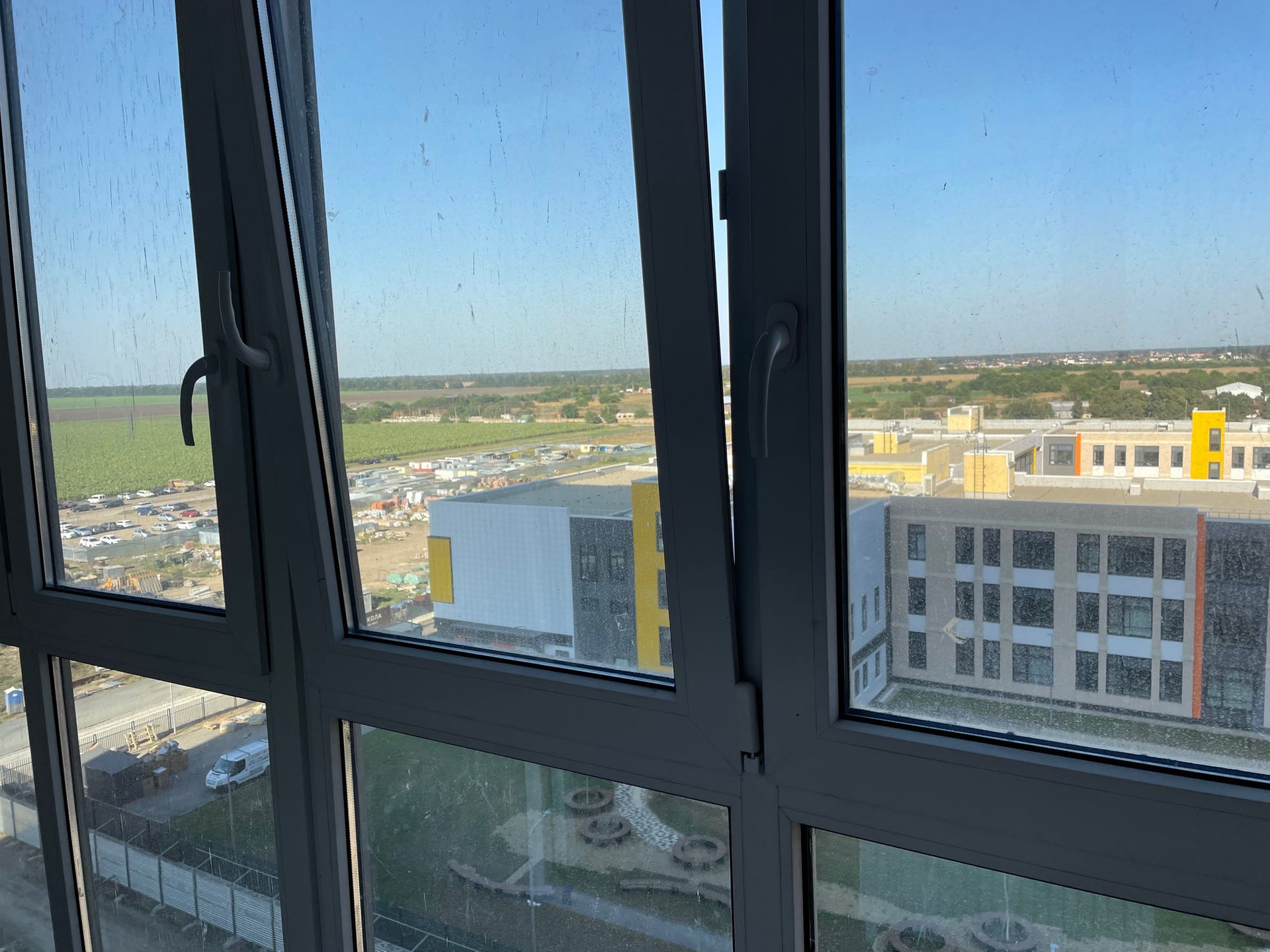 Квартира-студия с большой лоджией 5 м2 (на планировке площадь лоджии указана с коэффициентом 0,5). Ширина лоджии 1,3 м. Шикарный вид 9 этаж восточная сторона, напротив уже построена 3-х этажная школа, за школой современный футбольный стадион и никаких домов. Комната квадратной формы 4,3 на 3,8 м. Остекление лоджии панорамное, между лоджией и комнатой также панорамное остекление. Квартира сдаётся в