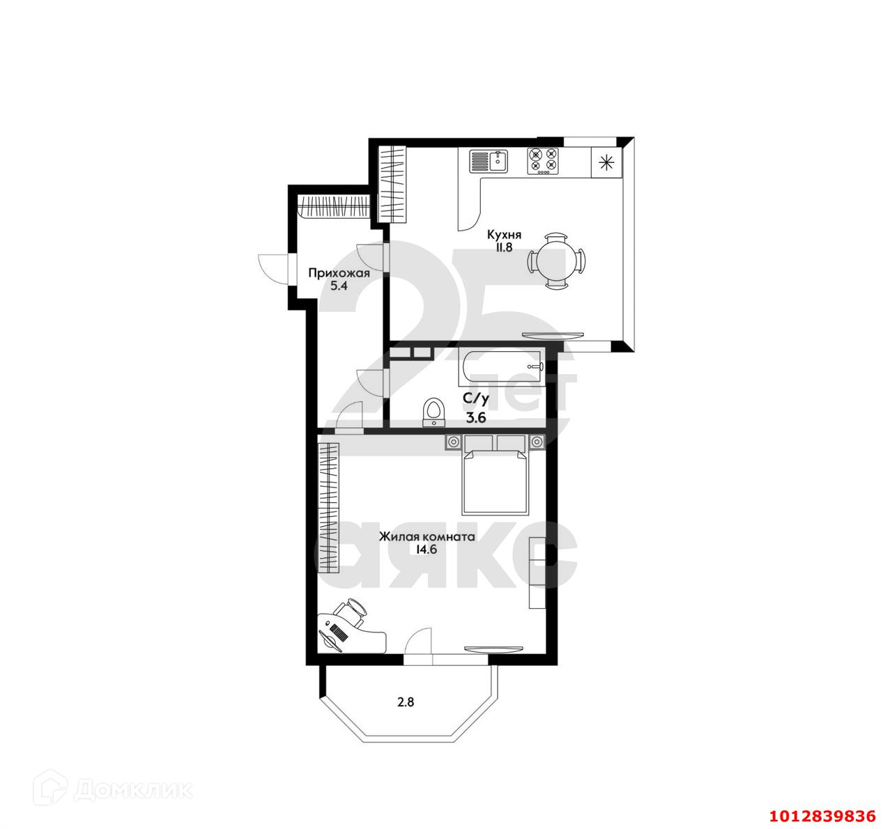 Балкон, лоджия 1 балкон
