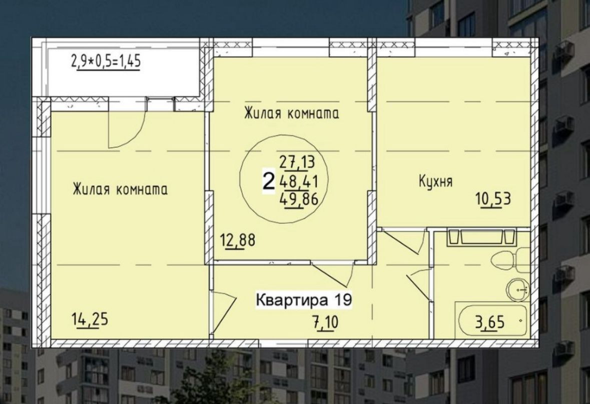 Общая площадь 49.86 м2