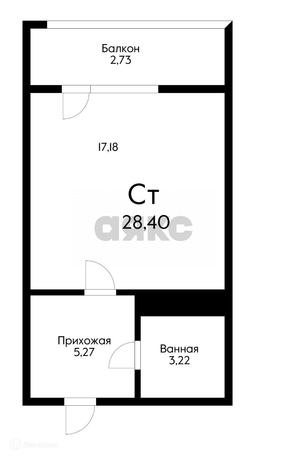 Общая площадь 25.6 м2