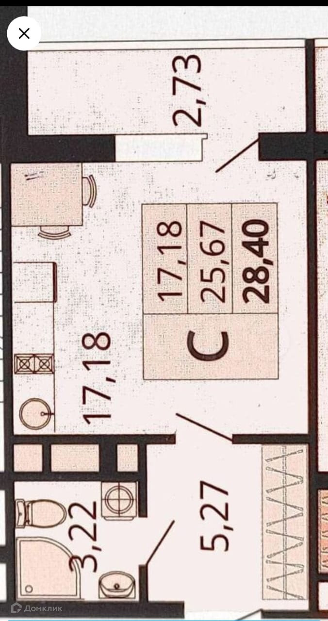 Общая площадь 28.4 м2