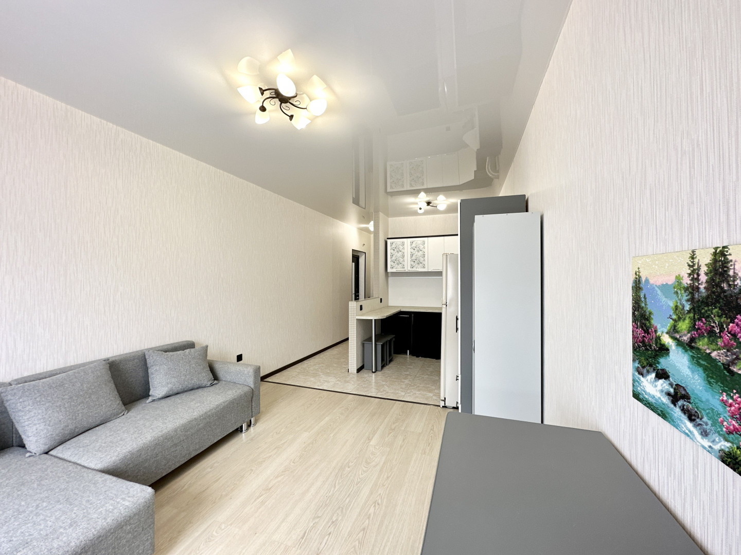 Квартира-студия 27,3 кв.м (район Родных Просторов) со всей мебелью и техникой (включая сплит систему и холодильник) на 3 этаже 4-х этажного монолитно-кирпичного дома. Светлая, уютная, тёплая квартира в черте г. Краснодар, пос. Знаменский с хорошим ремонтом.