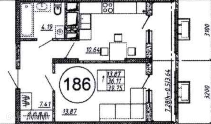 Квартира общей площадью 36.11м2