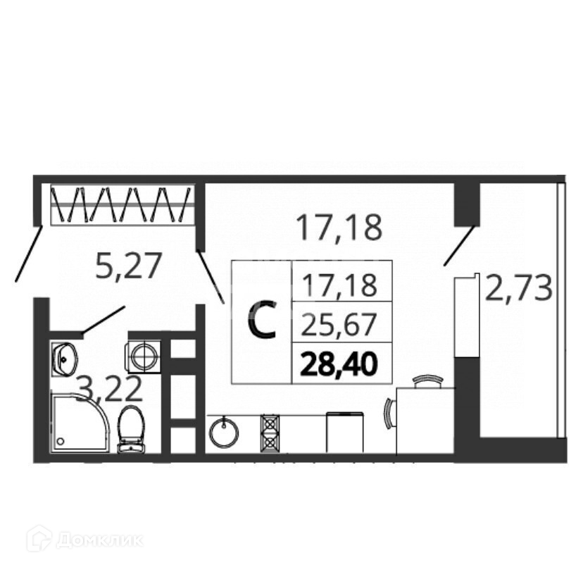 Общая площадь 28.4 м2