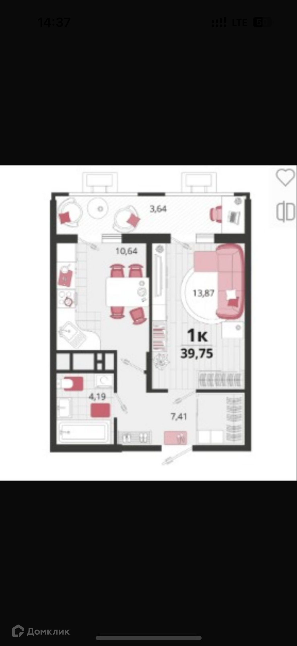 Общая площадь 39.75 м2