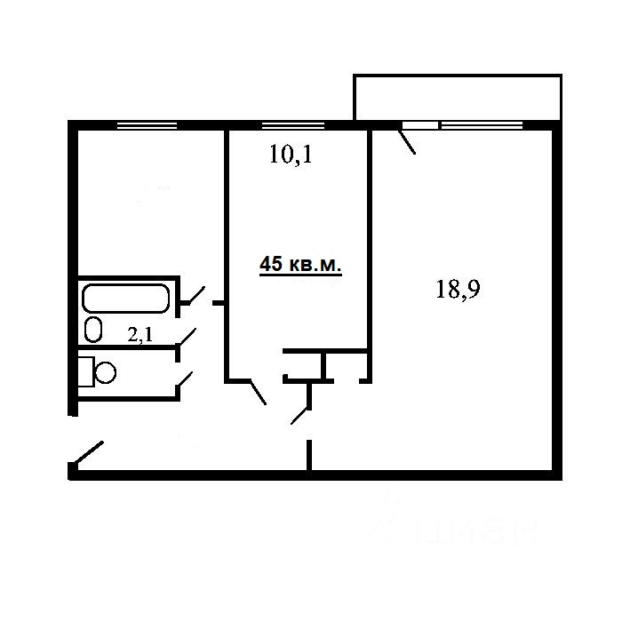 Общая площадь 45 м2