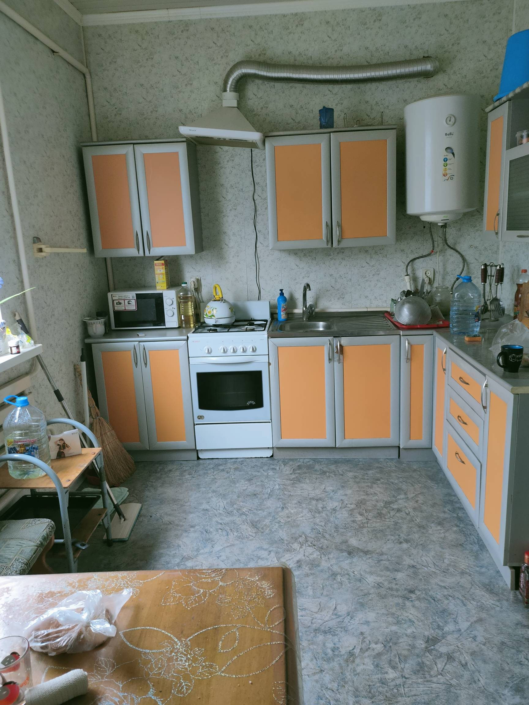 Просторная кухня с мебелью.