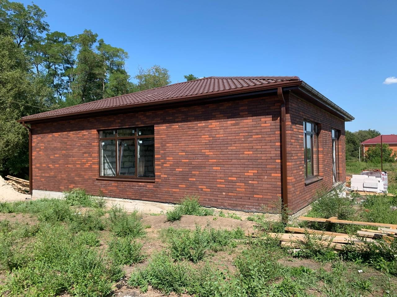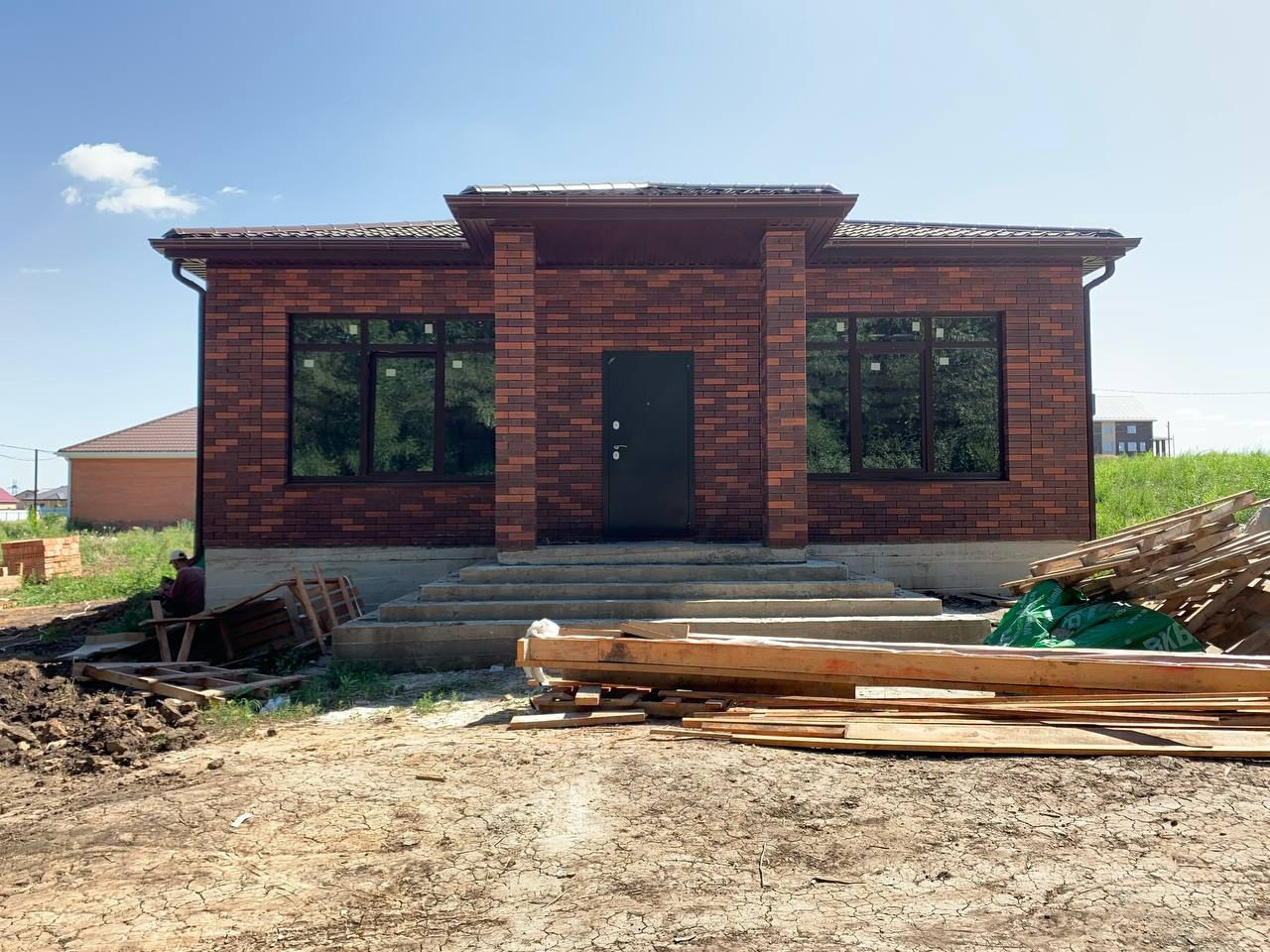 Здравствуйте! Сегодня хочу рассказать вам про наш одноэтажный кирпичный дом, который мы хотим продать. Его площадь составляет 105 квадратов, внутри три спальни, гостиная, совмещённая с кухней, два санузла, прихожая и просторный гараж. Стены дома сделаны из кирпича высокого качества, что гарантирует их прочность и долговечность. Фасад дома выглядит современно и будет актуален ещё много лет. Внутренняя отделка выполнена в предчистовом варианте, что позволяет новым владельцам создать интерьер по своему вкусу и не переплачивать за готовый дизайн. В доме уже установлены окна и дверь высокого качества, которые обеспечат комфорт и тишину жильцам. Особенностью этого дома является просторная кухня-гостиная, где можно проводить время всей семьёй или принимать гостей. Также внутри достаточно пространства для размещения мебели и техники. Мы решили продать этот дом, потому что планируем переезд в другой город. Но этот дом подойдёт не только нам, но и молодой семье или тем, кто ищет спокойное место для проживания. И самое главное - этот дом можно приобрести с помощью ипотеки! Я уже получил одобрение от нескольких банков и вы также можете воспользоваться этими программами ипотечного кредитования. Звоните и уточняйте, если заинтересовало!