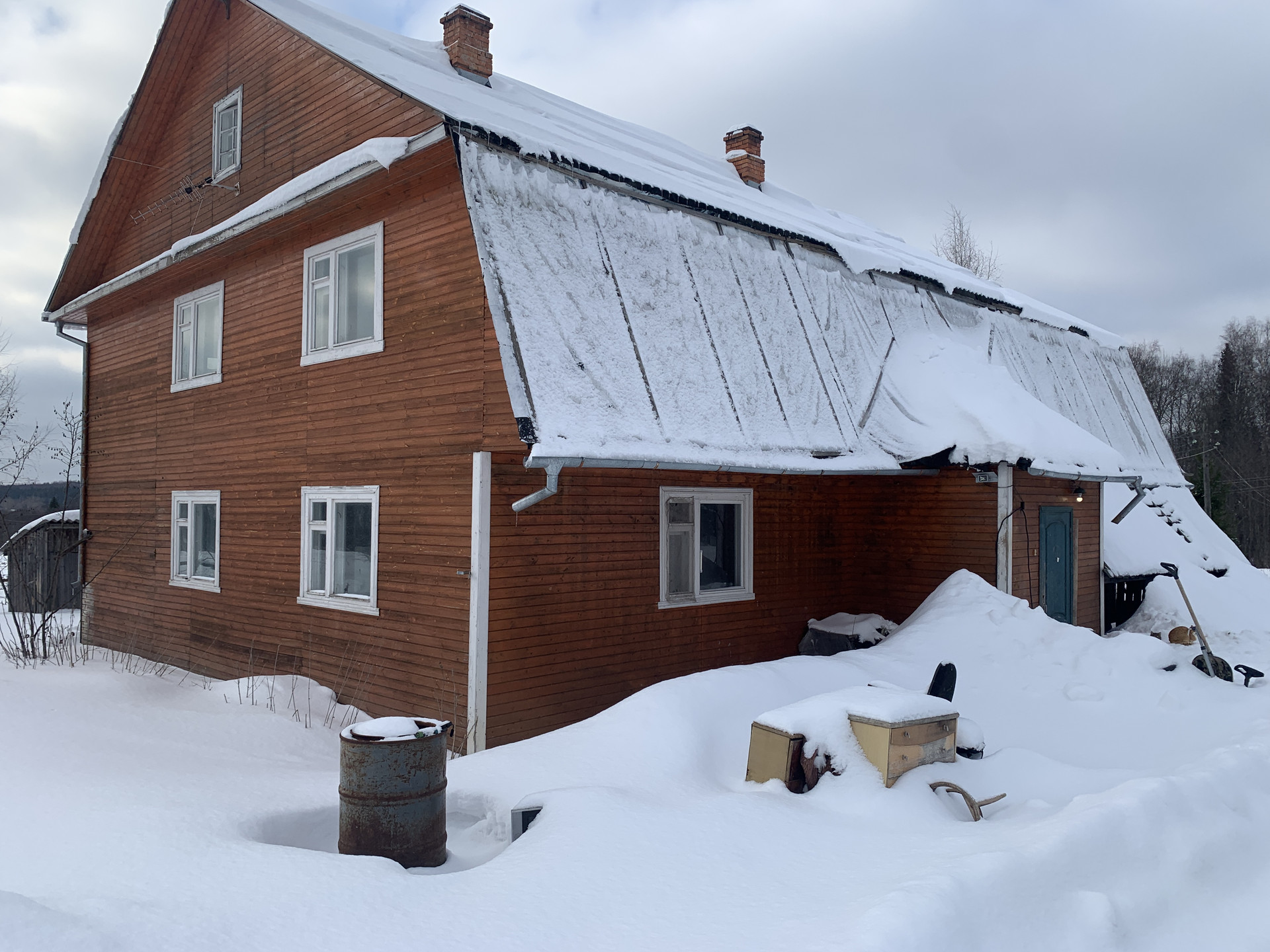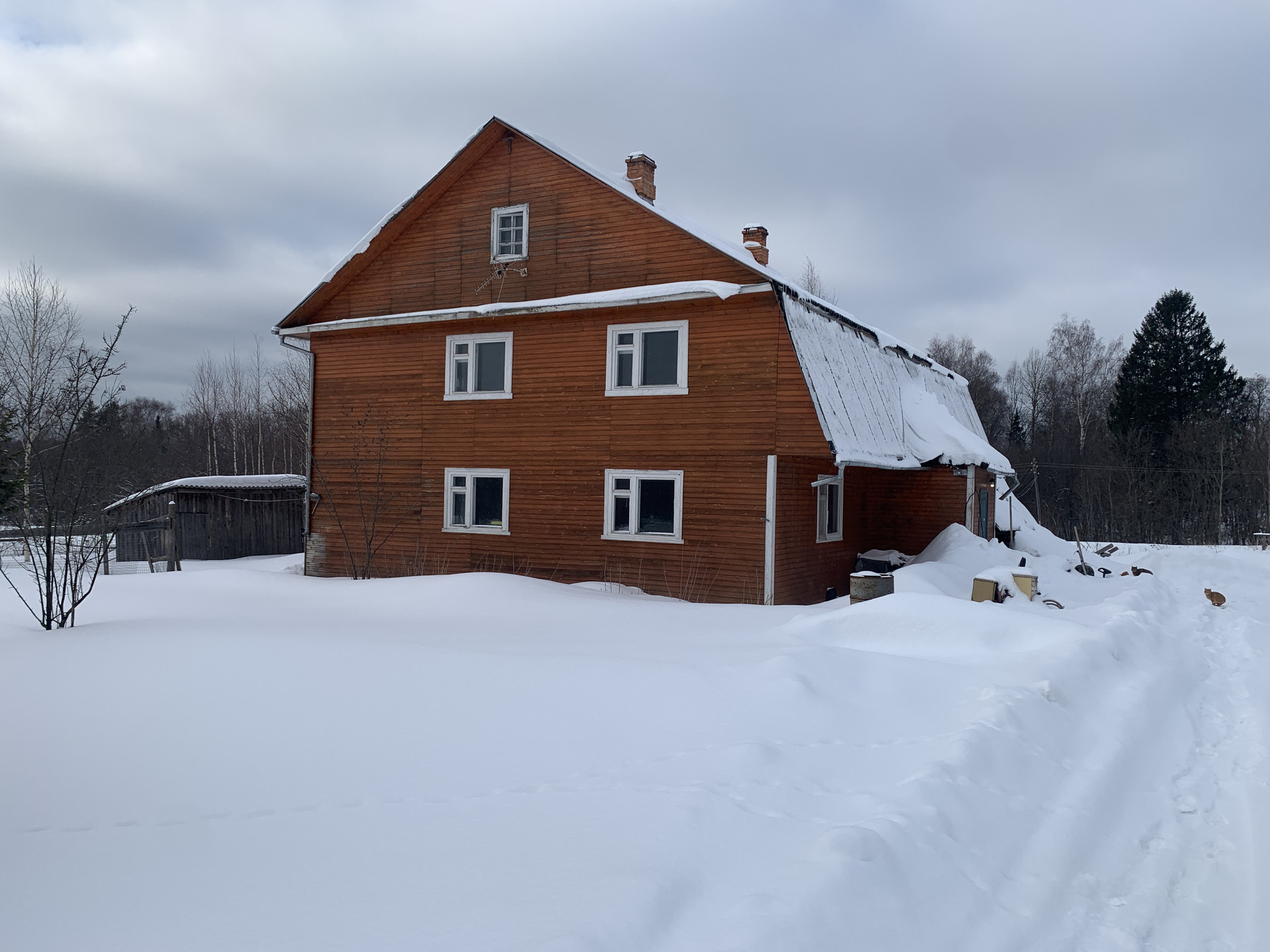 Двухэтажный деревянный комбинированный ( бревно, каркас ) дом, состоит из сруба посередине и каркасных пристроек с двух сторон. Размер дома 15 на 10 метров. Первый этаж состоит: из прихожей, кухни, двух подсобок и четырёх комнат: одна изолированная комната и три смежные комнаты. Второй этаж не отремонтирован, состоит: из трёх смежных комнат и одной изолированной так же имеется подсобная комната. Дом не оформлен. Возможна покупка недвижимости с использованием ипотечного кредитования.