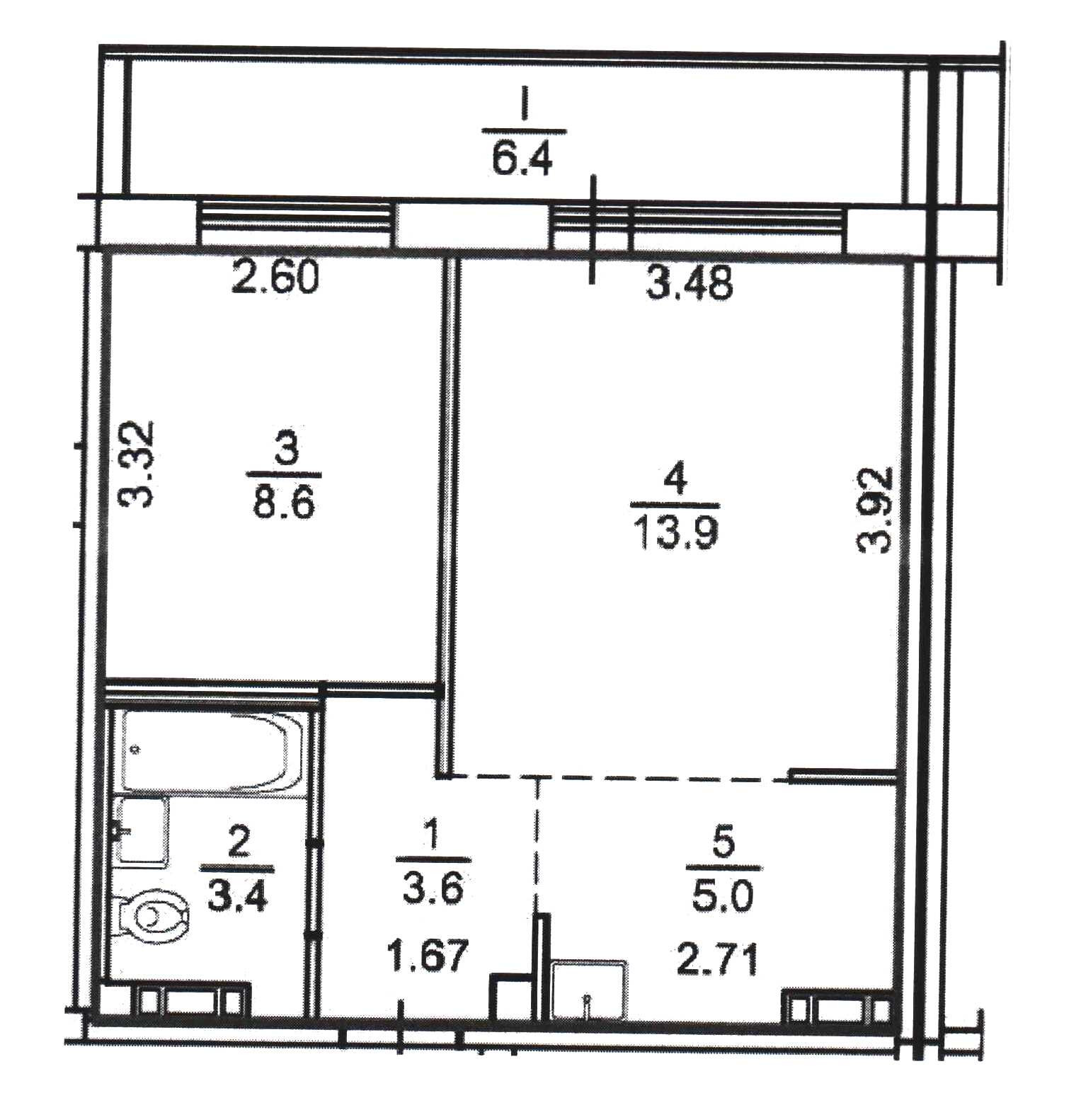 Балкон, лоджия 1 балкон