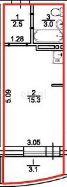 Общая площадь 23.9 м2