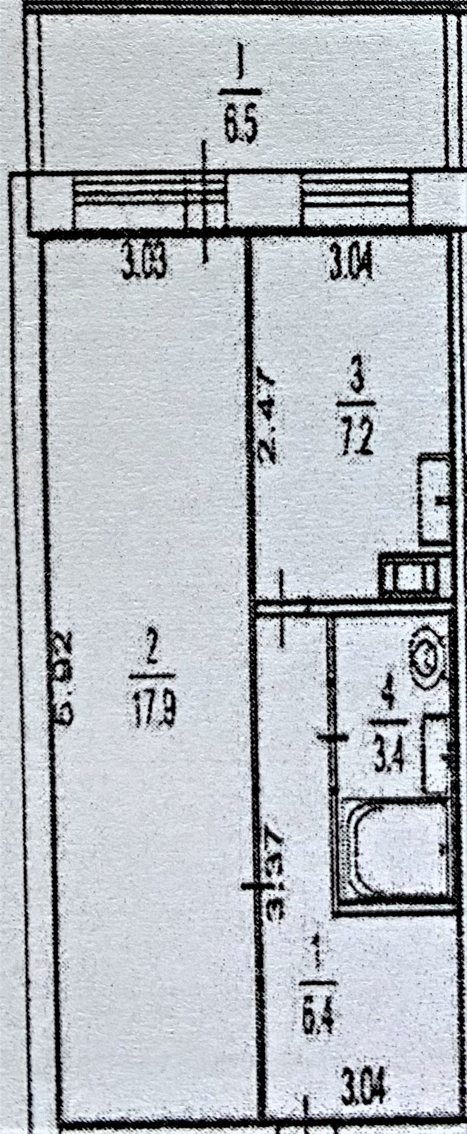 Жилая площадь 17.9 м2