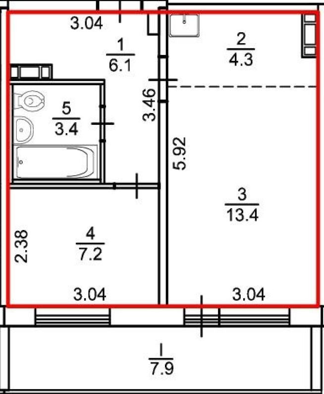 Балкон, лоджия 1 балкон