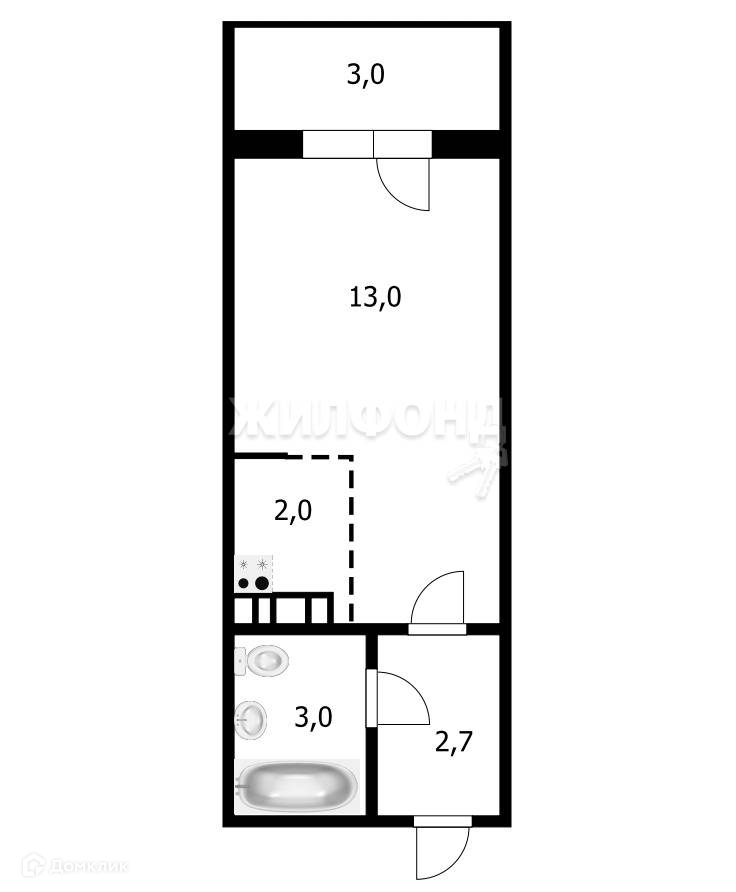 Общая площадь 21 м2
