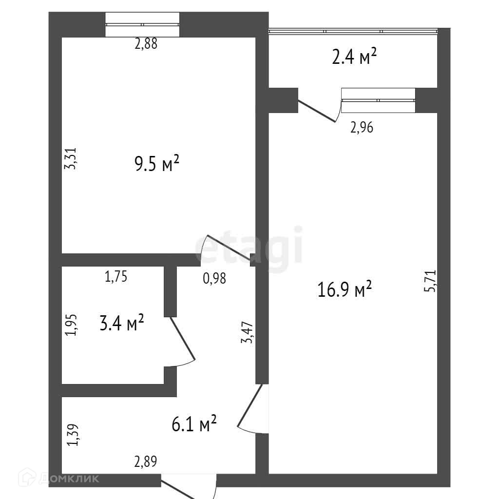 Балкон, лоджия 1 балкон