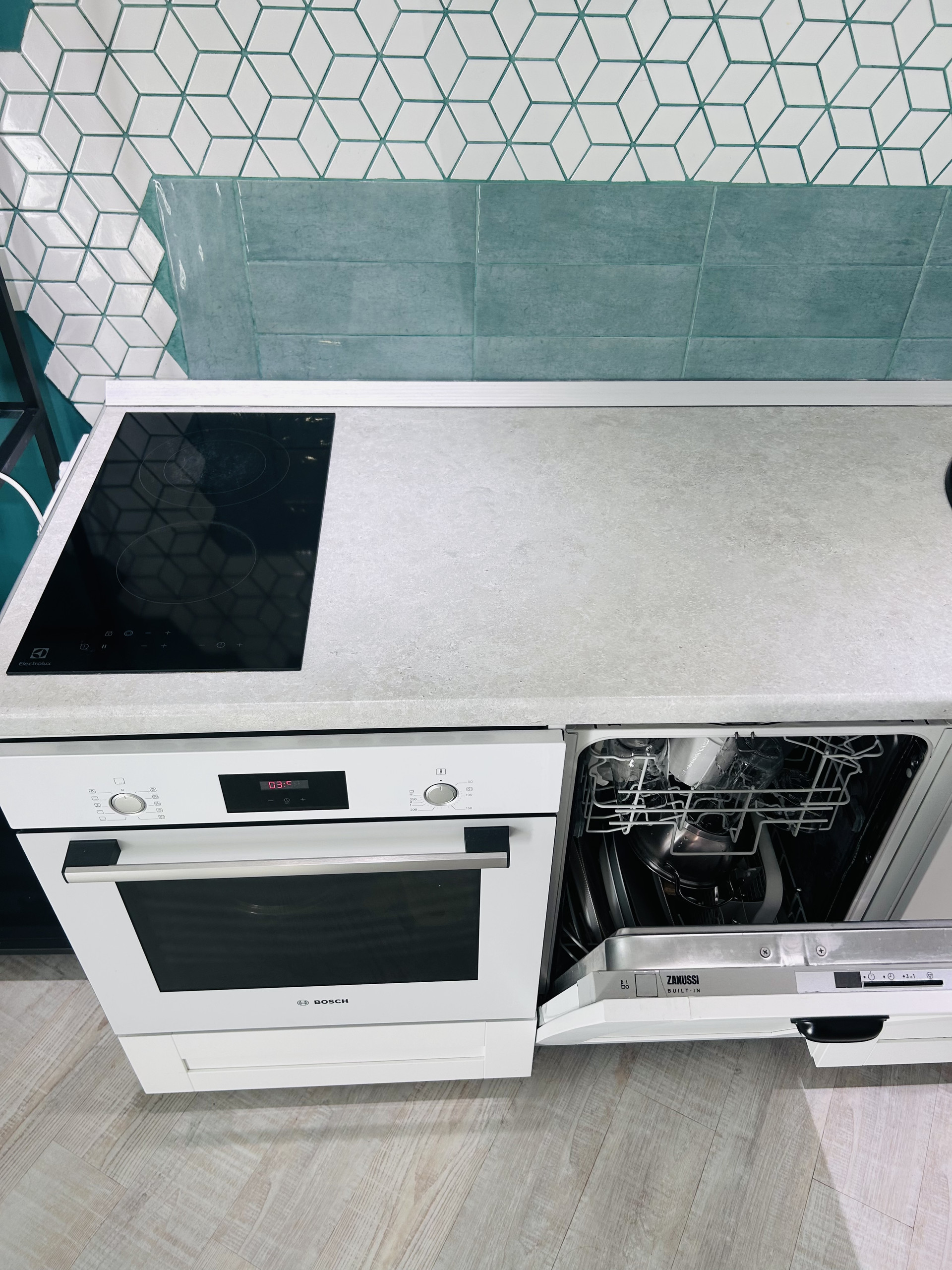 Кухня IKEA с современной встроенной техникой: посудомоечная машина, холодильник, плита – все остается для вас!