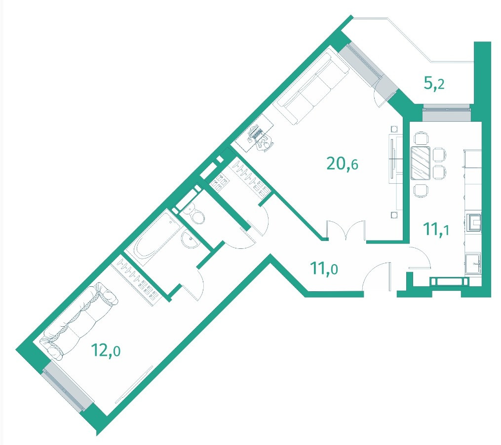 Жилая площадь 61.5 м2