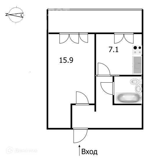 Жилая площадь 15.9 м2