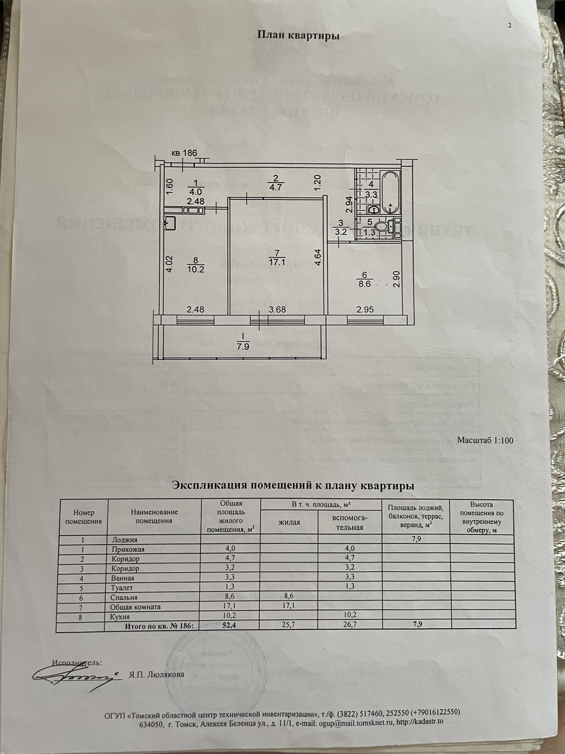 Общая площадь 52.4 м2