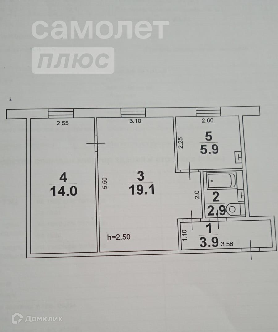 Высота потолков 2.5 м