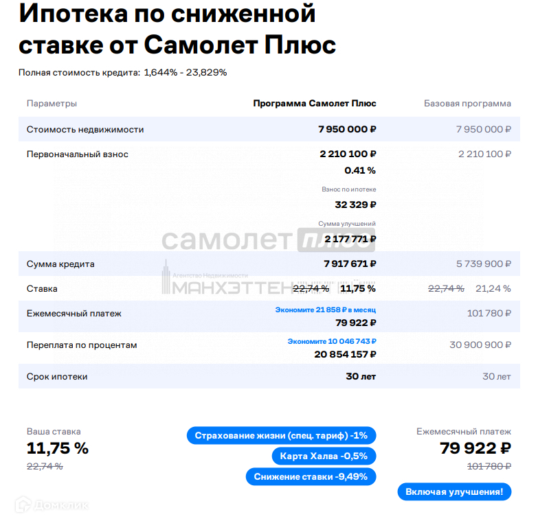 Арт. 74839900 Данный объект можно купить по субсидированной процентной ставке от 11,75%, что существенно снизит ежемесячный платеж по ипотеке!!! Расчет прилагается на последнем фото.