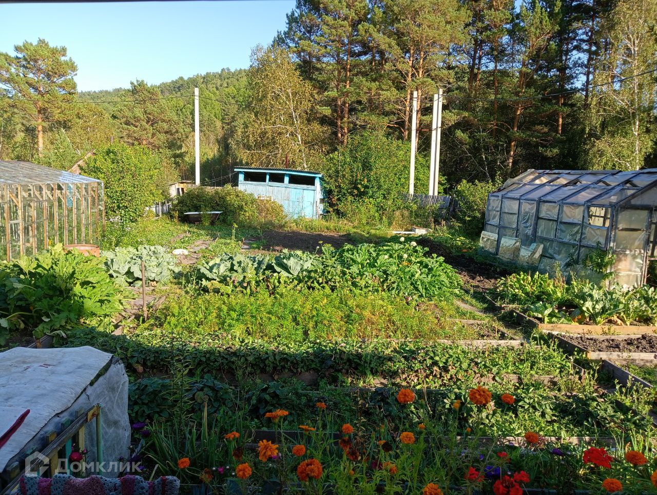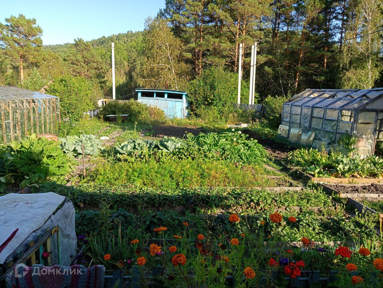 На участке имеются плодово ягодные насаждения(смородина,слива,калина,клубника,малина,крыжовник).