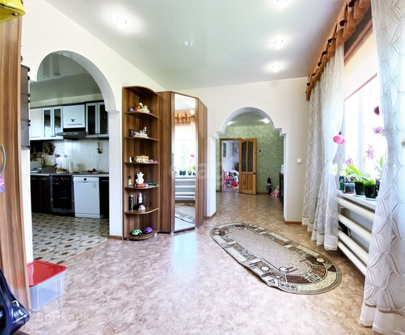 На первом этаже выполнен хороший, косметический ремонт. Вход в дом с двух сторон улицы (один со стороны дороги, другой со двора), большой просторный коридор, зал, есть электрический камин, который в прохладные деньки греет душу. Две полностью изолированные светлые комнаты.
