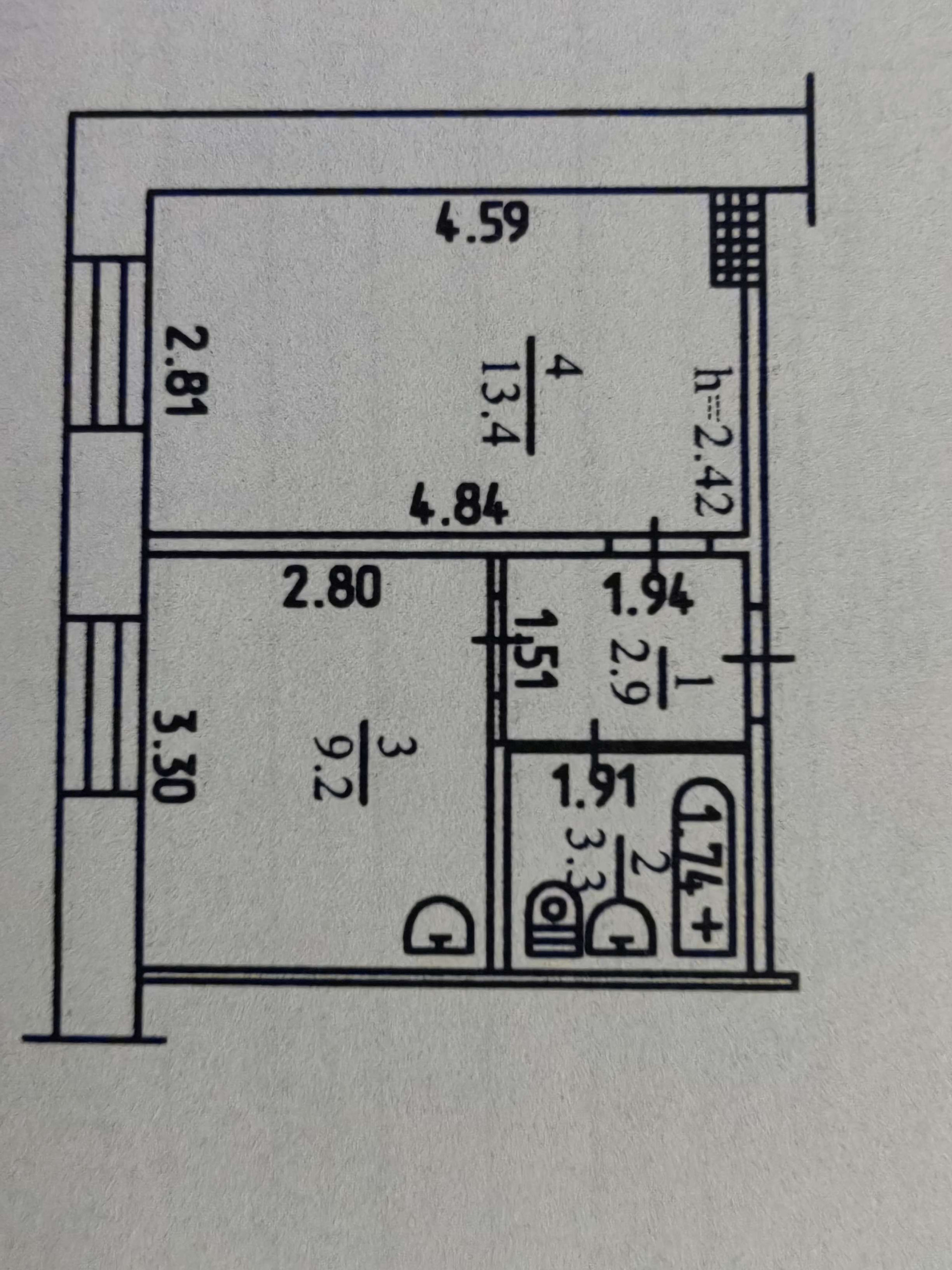 Жилая площадь 13.4 м2